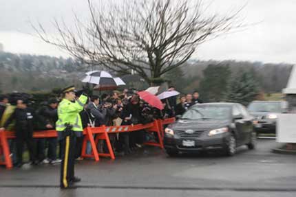 加拿大及來自香港記者都在想方設(shè)法尋找警方保安的漏洞,希望接近肥肥下葬的墓地,紛紛繞著方圓幾公里的墓園轉(zhuǎn)圈。不過,警方似乎就有準(zhǔn)備,在所有有機(jī)會(huì)進(jìn)入墓園出入口都派多人把守,另外,在一些有可能拍攝到下葬地點(diǎn),甚至送殯隊(duì)伍經(jīng)過路線的墓園邊,也派駐大批警員。幾乎是三步一崗、五步一哨。連記者接近墓園邊界的鐵絲網(wǎng),也被警員阻止。
