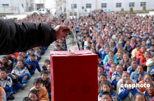 拉薩堆龍德慶縣中學師生向受害民眾捐款(3)