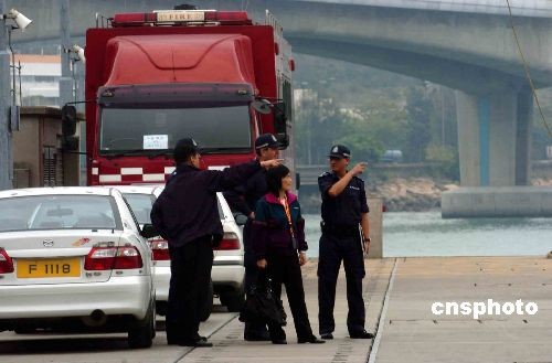 三月二十五日,香港警隊高層視察沉船的現場。中新社發 譚達明 攝