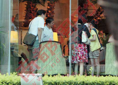 胡紫薇和朋友聊奧運節目,張斌也很開心地加入交談。