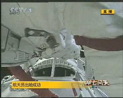 9月27日16時(shí)44分許,“神七”航天員翟志剛走出艙外開始實(shí)施出艙活動(dòng)。