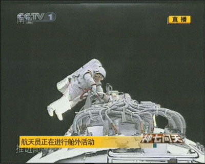 9月27日,“神七”航天員翟志剛出艙活動結束返回軌道艙。