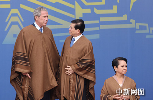 為期兩天的亞太經(jīng)合組織第十六次領(lǐng)導(dǎo)人非正式會議,二十三日在秘魯首都利馬結(jié)束。圖為各成員領(lǐng)導(dǎo)人在會后身著南美披風(fēng)合影。齊彬攝