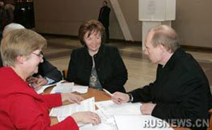 新一屆總統(tǒng)的熱門人選、俄第一副總理梅德韋杰夫偕夫人斯韋特蘭娜則在駐地附近的第二六一四號(hào)投票站出現(xiàn)。四十二歲的梅德韋杰夫投票后表示心情不錯(cuò):“春天已經(jīng)來(lái)了,雖說(shuō)有點(diǎn)小雨,也是令人愜意的插曲。畢竟季節(jié)已經(jīng)變了。”