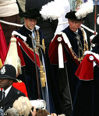 身穿騎士套裝的威廉王子看起來非常引人注目,當他與父親、祖父以及其他騎士組成隊列走過時,他的眼睛始終緊盯地面,神色顯得稍微有些局促不安。