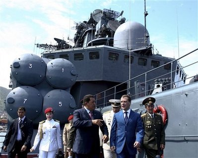 中新網11月28日電 俄新網消息,俄羅斯總統梅德韋杰夫和委內瑞拉總統查韋斯27日參觀了俄羅斯“恰巴年科海軍上將”號大型反潛艦,該艦作為參加與委內瑞拉海軍舉行聯合演習的艦隊成員抵達該國。