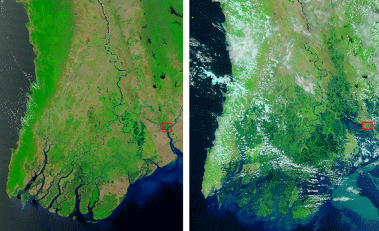 NASA公布熱帶風(fēng)暴襲擊緬甸前后對比照片(圖)