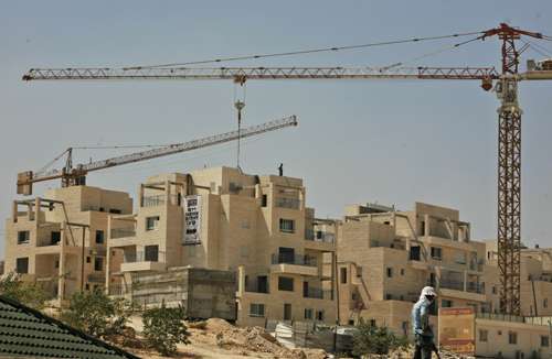 巴勒斯坦建筑工人十二日在西岸一個建筑工地工作。