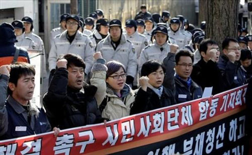 首爾當(dāng)?shù)?3日中午,數(shù)十名雙龍工會及一些市民團(tuán)體成員圍堵在中國大使館門前示威,在近兩個小時的抗議過程中,示威者借助擴(kuò)音器不斷地喊“中國上汽應(yīng)做出賠償”、“上汽竊取雙龍汽車核心技術(shù)”等口號,這些人的圍堵給使館人員進(jìn)出造成很大不便。多家韓國媒體也趕到抗議現(xiàn)場報道,紐西斯通訊社報道稱,參加示威的有雙龍工會等11個市民團(tuán)體成員。工會方面宣稱,由于上汽是中國國有企業(yè),中國政府也該為雙龍危機(jī)負(fù)責(zé)。而一些團(tuán)體指責(zé)“上汽偷竊雙龍技術(shù)是對數(shù)十萬韓國工人的犯罪”,要求韓國政府追究上汽責(zé)任。
