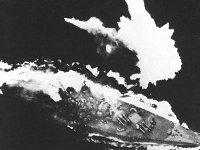 1945年3月19日,“大和”號戰列艦被美國“黃蜂”號航空母艦上的艦載機轟炸(資料圖)