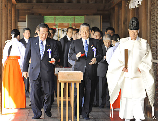 自民黨選舉對策委員會委員長、日本遺屬會會長古賀誠以及遺屬會副會長、自民黨參院議員會長尾辻秀久等前往參拜。此外,來自民主黨的前農相田名部匡省、國民新黨代表綿貫民輔、新黨大地代表鈴木宗男也參加了參拜。