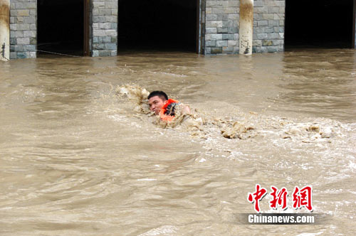 肆虐的泥石流將映秀鎮板房醫院沖毀,在現場,洶涌的洪水四處串流,淹沒了災后恢復重建的中攤堡大道,附近重建安置房、民工板房全部進水,深約1米多。