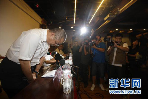 8月26日,河南航空公司監事會主席劉航在新聞通氣會上鞠躬致歉