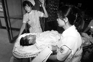 昨晚7時30分,北大三院門口五六輛救護車分別開進大門,多名保安把守大門。醫(yī)院工作人員將傷者送進搶救室接受救治,傷員情況較好。