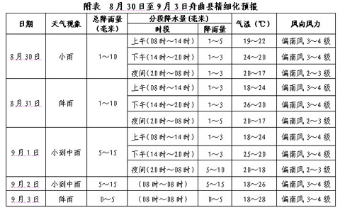 8月30日,舟曲縣及白龍江流域有小雨或陣雨。