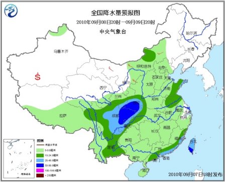 中新網9月7日電 據中央氣象臺預報,未來三天,全國降水范圍較大,其中,山東東部和南部、安徽北部、江蘇北部、湖北東部和西南部、湖南北部、四川中東部、重慶大部、云南東部、甘肅東南部、陜西南部、福建中南部、廣東東部及臺灣等地有大雨或暴雨,局部地區有大暴雨,上述部分地區并伴有短時雷雨大風等強對流天氣。