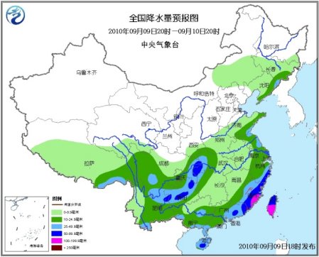9日20時至10日20時,青海東南部、西藏大部、陜西東南部、內蒙古東南部、吉林、遼寧、黃淮、江淮、江漢、江南、華南、西南地區大部等地有小到中雨或陣雨,其中,川西高原南部、重慶東部、湖北西南部、貴州中北部和西部、云南東北部、浙江東部沿海和南部、福建、廣東中東部和西南部、廣西南部、海南、臺灣等地有大雨或暴雨,福建東南部、臺灣南部等地局部有大暴雨;另外,西藏東南部、江蘇東北部等地的部分地區有大雨;上述部分地區并伴有短時雷雨大風等強對流天氣。新疆西北部、內蒙古中西部和東南部有4~5級風;廣東沿海、福建沿海、浙江南部沿海等地有6~8級風。受“莫蘭蒂”的影響,臺灣海峽、臺灣以東洋面和以南海域、南海北部有7~8級大風,“莫蘭蒂”中心經過的附近海域風力有9~11級,陣風可達12~13級;東海南部有5~7級東南風。