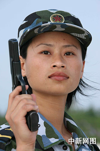 初冬,祖國(guó)美麗的寶島西沙群島依然烈日炎炎,強(qiáng)烈的陽(yáng)光照在銀色沙灘上反射出刺眼的光芒。只見(jiàn)海軍西沙某部綜合訓(xùn)練場(chǎng)上,一名身著海洋迷彩的嬌小女兵快步走到輕武器射擊地線,伴隨著指揮員一聲令下,“嗖”地從腰間拔出手槍,左右開(kāi)弓,“啪啪”一陣槍響后,正前方50米開(kāi)外的10面靶牌應(yīng)聲倒地。這位槍槍中的,彈無(wú)虛發(fā)的雙槍神射手就是西沙某部女兵班班長(zhǎng)黃沛純,也是目前在西沙小島上工作時(shí)間最長(zhǎng)的女性。她也創(chuàng)造了西沙女兵手槍射擊的最高記錄,左手48環(huán),右手49環(huán)。日前,一位視察西沙部隊(duì)的首長(zhǎng)看了她的射擊表演后,激動(dòng)地說(shuō):“這個(gè)女兵可真不一般!”