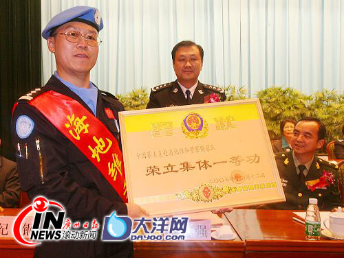 據了解,此次防暴隊由廣東邊防獨立組建,于今年4月奔赴海地執行維和任務,在執行維和任務的8個月時間里,圓滿地完成了各項任務,聯合國秘書長潘基文稱贊防暴隊是“維護世界和平的使者,中國的驕傲”,10月1日,防暴隊125名隊員被授予聯合國“和平勛章”,11月27日,聯海團總警監頒發嘉獎令,使中國防暴隊成為任務區9支維和警察防暴隊中,唯一獲此殊榮的單位。(記者 李棟 通訊員 李國良、馬云龍、陳陽紅)