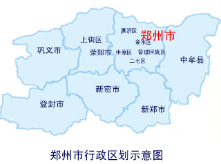 【區劃】轄區6個、縣級市5個、縣1個。分別是:中原區、二七區、金水區、管城回族區、惠濟區、上街區、滎陽市、鞏義市、登封市、新密市、新鄭市、中牟縣
