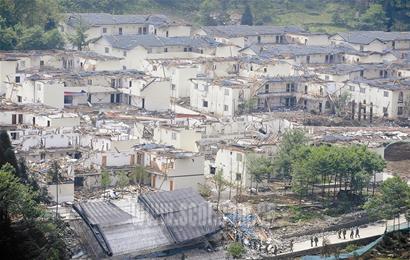 上午11時46分,記者被眼前場景震驚:一個直徑約700米的巨大山坡在12日的強震中被徹底震垮,數萬平方米的巨石、碎石、泥土滾落……九峰村謝家寨瞬間消失在一大片望不到盡頭的泥石流中——16戶人家、近百位村民和游客被埋在數十米的山體下。當地村民說,地震時道路突然隆起,房屋朝兩側垮塌,后面的大山突然臨空垮塌,轟隆聲持續半個多小時。
