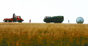 這片草場大體位于“神五”、“神六”著陸的位置之間,距二者均約10公里。記者在現場看到,模型傾斜倒在草場,身穿“中國航天搜救”制服的人員證實,這是“神七”主著陸場最后一次大型綜合演練。