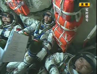 中新網9月26日電 綜合消息:北京時間26日凌晨4時零5分“神舟七號”載人飛船成功變軌,進入高度約343公里的圓型軌道,飛船已由沿橢圓軌道運行變為沿圓形軌道運行。26日4時零6分,航天員打開返回艙艙門,脫下艙內壓力服,換穿工作服。航天員翟志剛、劉伯明進入睡眠。