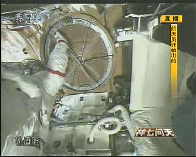 中新網9月27日電 中國“神七”載人飛船航天員翟志剛正在打開返回艙艙門,準備出艙。這是中國航天員的首次空間出艙活動。
