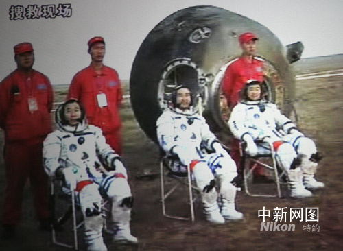 中新網(wǎng)9月28日內(nèi)蒙古四子王旗“神七”主著陸場電 題:中國“飛天三杰”駕駛“神舟”踏云歸