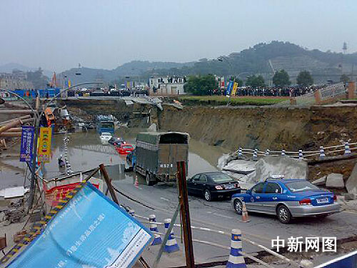據在事故現場目擊人員告訴記者,八車道的風情大道塌下去約100余米長,塌陷深度有20米左右。事故發生時,地鐵施工的坑道內有多名施工人員。僅清理淤泥的工人就有二十余名。事故發生后,包括公安、武警、消防、衛生等多個部門的救援人員迅速趕到在現場施救。
