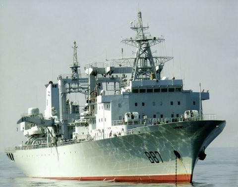“微山湖”號(hào)綜合補(bǔ)給艦(舷號(hào)887)是中國(guó)自行設(shè)計(jì)建造的最大補(bǔ)給艦,排水量接近3萬(wàn)噸,可同時(shí)為兩艘以上艦船補(bǔ)給,2007年曾與“廣州”艦一起出訪歐洲多個(gè)國(guó)家。