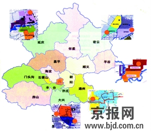 2009年擬實施的10座新城集中供熱中心分布示意圖