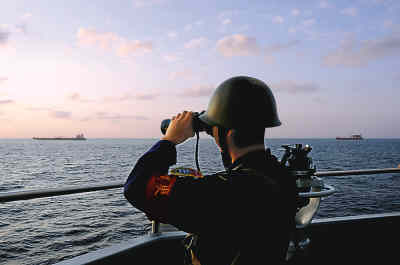 當地時間1月12日6時(北京時間11時),中國海軍護航編隊為包括臺灣商船“宇善”號在內的4艘船舶組織實施護航。這是中國海軍護航編隊抵達亞丁灣以來的第二次護航行動。錢曉虎攝(新華社發)