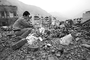 臘月二十三到年三十,是北川傳統的祭拜親人的日子,韓貴鈞介紹,為了滿足災民希望到縣城祭拜親人的要求,他們決定北川縣城向當地居民開放,但必須在規定的道路上進行。有些危險區域,有武警把守和監督。
