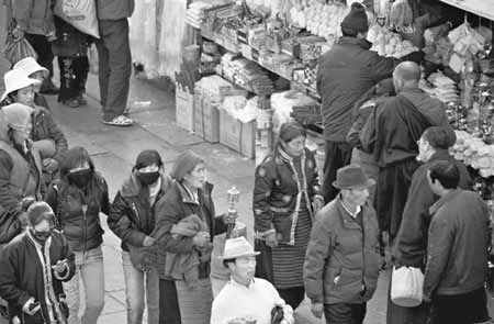 陽光下的拉薩顯得溫暖而平和,在熱鬧的八角街,朝圣者的腳步依舊匆匆,大大小小的商鋪依舊熱鬧。74歲的藏族老人益西洛追住在夏薩蘇社區(qū),他喜歡每天到八角街上走一走,感受這里的繁華。經(jīng)歷過新舊兩個西藏的益西洛追,在這條街上最能感受到時代變遷的真正含義。