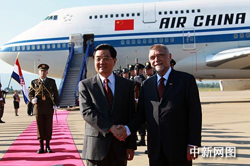 中新網薩格勒布6月19日電 (記者 齊彬) 當地時間十九日下午,中國國家主席胡錦濤抵達薩格勒布,開始對克羅地亞進行國事訪問,這是他此次歐洲三國之行的最后一站,也是克羅地亞獨立十七年來,中國國家元首首次到訪。