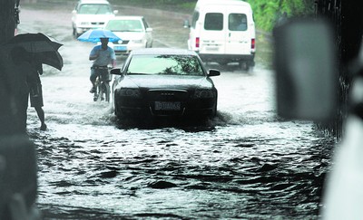 昨日,長沙城區馬欄山涵洞里積水很深,過往車輛和行人大受影響。賀文兵 余志雄 陳飛 攝影報道
