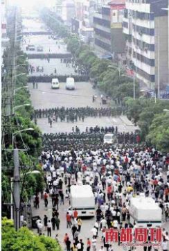 在半島電視臺記者問熱比婭如何看待烏魯木齊街頭漢族女孩遭攻擊的畫面時,熱比婭回答說:“我的人民進行的都是和平示威,他們的行為非常和平”。隨后熱比婭就拿出事先準備好的大幅照片,稱“我的人民被圍在中國軍隊中間,他們怎么可能發動攻擊呢”?記者仔細觀察了下,正如環球網友所爆料的那樣,熱比婭手中的所謂“證據”與烏魯木齊“7·5”事件沒有任何關系,那張照片是南方報網于2009年6月26日刊登的題為《石首“搶尸”拉鋸戰》報道中所配的圖。