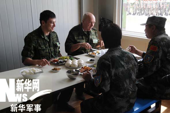 新華軍事:之前你為網友介紹過中方的飲食,按規定是六菜一湯,比較豐盛。這幾天有沒有機會吃到俄軍的飯菜?他們的飲食狀況是怎樣的?