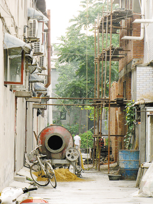 昨天上午,記者從位于談固東街的大門進(jìn)去,首先映入眼簾的是一棟剛建好的四層樓。繼續(xù)往里走,道路上不時出現(xiàn)小型攪拌機(jī)的影子,一堆堆的沙土堆放在道路中間。