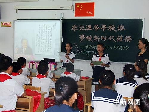主題班會上,淮陰師范學院第一附屬小學的學生們還向淮安全市的少先隊員發出了“牢記溫爺爺的教導,像周總理一樣從小樹立‘為中華之崛起而讀書’遠大志向”的倡議。淮安市委書記劉永忠、淮安市委常委、宣傳部長劉希平等領導參加了主題班會,并向孩子們贈送圖書,鼓勵孩子們牢記溫總理的教導,好好學習,將來為家鄉的建設做貢獻。