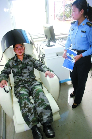 這套系統由上海一家公司專門為軍人心理情緒訓練而開發,對于飛行員這種需要高靈敏反應和判斷能力的職業來說,其心理素質的高低直接決定其軍人素質的高低。場站醫院的醫師告訴記者,基本上每天都會有飛行員來這里借助系統進行放松,當他們掌握了系統的使用方法后,就可以隨時隨地科學地調整自己的心理,維持更好的狀態。