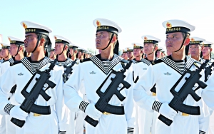 “步伐齊,口號響,一點也不遜色男兵”,說起女兵方隊,武警的一位戰士豎起了大拇指。除了女兵方隊,身材魁梧勻稱的三軍儀仗隊方陣也是大家關注的焦點。作為閱兵中率先登場的方陣,其所過之處往往會贏得一片喝彩。即便教官也會湊上前拍照留念。