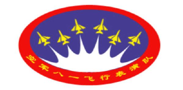 殲-10表演隊的隊徽采用兩個鑲嵌的橢圓,中間是6架戰鷹,在兩個橢圓之間下部噴涂“空軍八一飛行表演隊”字樣。 隊徽顏色采用紅、黃、藍、白四種顏色。噴涂在機頭左右兩側,共2處(見圖12、13)。