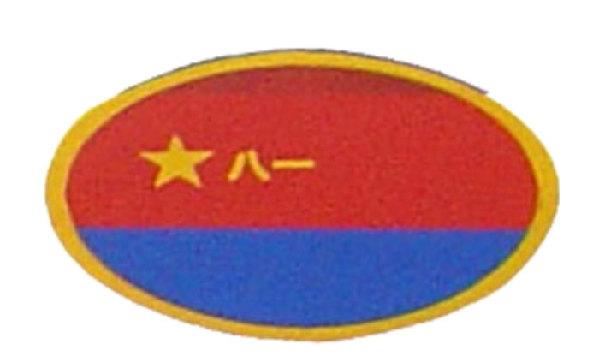 飛機編隊標記為橢圓形狀,由上、下兩個部分組成,采用紅、黃、藍3種顏色,上部噴涂黃色五角星和八一字樣,底色為紅色;下部噴涂為藍色。(見圖15)。