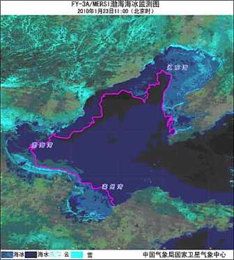 與2000年以來同期氣象衛星監測渤海海冰信息比較,今年1月23日渤海海冰范圍屬2000年以來的最大值,包括遼東灣、渤海灣、萊州灣海冰均為同期最大值。