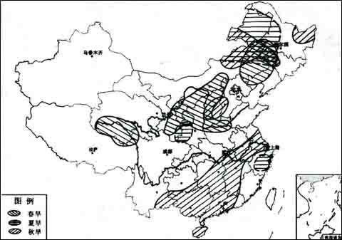 2004年全國主要干旱分布示意圖(國家氣候中心)
