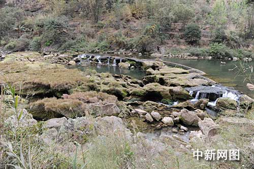 瀑布下的水潭,裸露出在河床底部的石頭,順著水流的方向一眼望去,不少石頭上竟長滿了青草。記者從景區工作人員處獲悉,受這次大干旱的影響,黃果樹瀑布的上游來水減少,使瀑布景觀漸受影響。到了3月,本是汛期的當地卻無雨水可降,大瀑布現每天依靠水庫閘壩調節維持景觀。