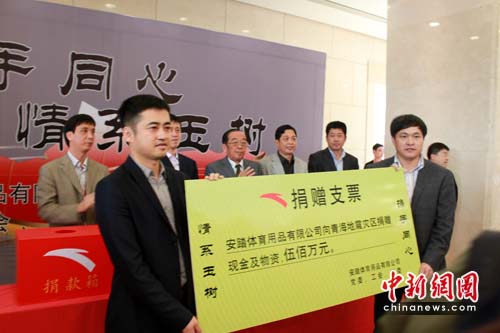 中新網(wǎng)晉江4月19日電(孫虹)19日,安踏體育用品有限公司透過晉江慈善總會(huì)向青海玉樹地震災(zāi)區(qū)捐贈(zèng)200萬元現(xiàn)金與價(jià)值300萬的賑災(zāi)物資,共計(jì)500萬元人民幣。