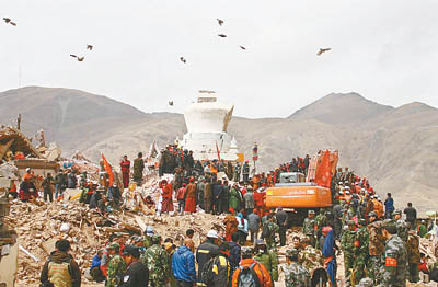 玉樹縣城整個兒被毀掉了。